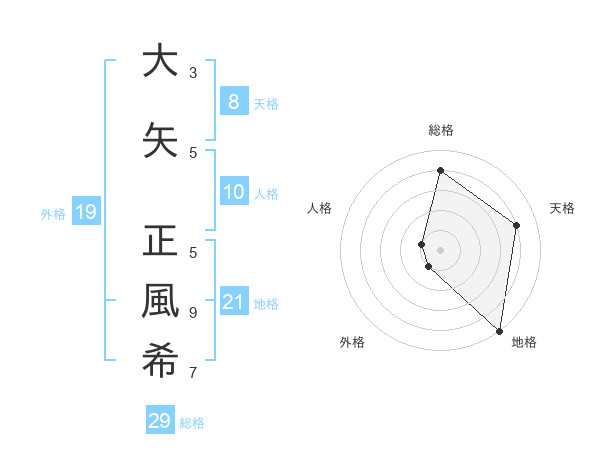 大矢 正風希さんを姓名の画数から五運を鑑定
