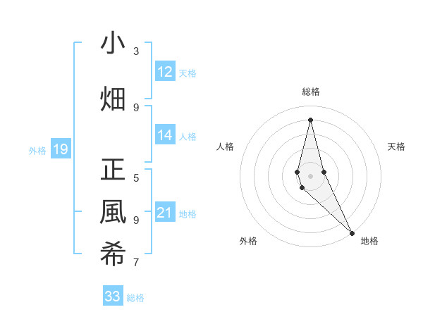 小畑 正風希さんを姓名の画数から五運を鑑定