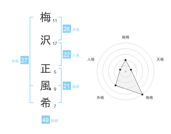 梅沢 正風希さんの地格は21画の5点!
