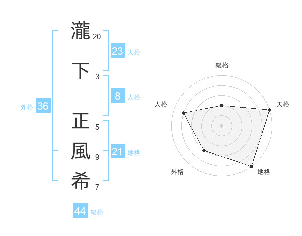 瀧下 正風希さんの天格は23画の5点!