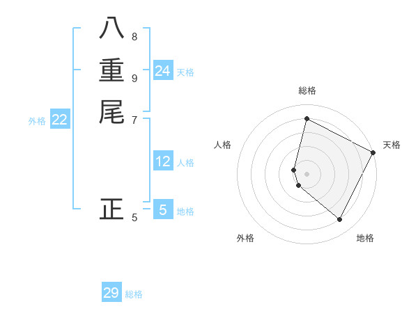 八重尾 正さんの総格は29画の4点!