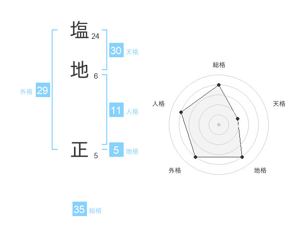 塩地 正さんの総格は35画の4点!