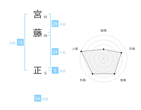 宮藤 正さんの総格は34画の2点!
