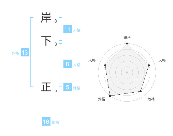 岸下 正さんの外格は13画の5点!