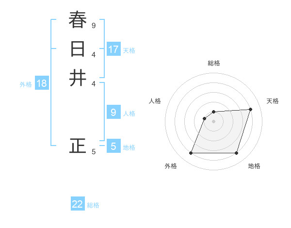 春日井 正さんの地格は5画の4点!