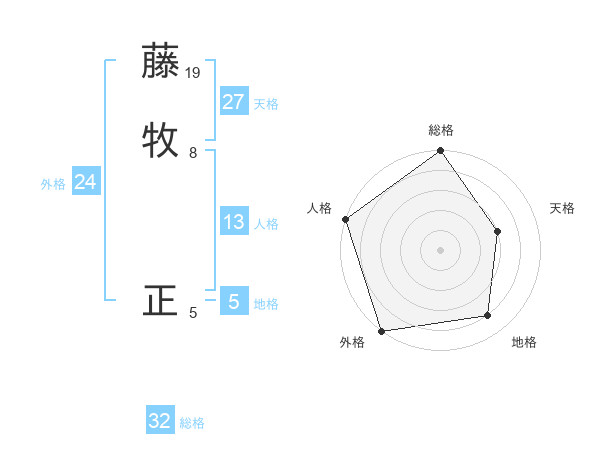 藤牧 正さんの総格は32画の5点!