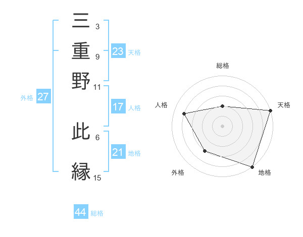 三重野 此縁さんの総格は44画の2点!