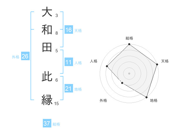 大和田 此縁さんを姓名の画数から五運を鑑定