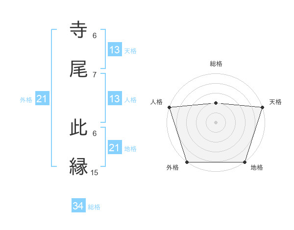寺尾 此縁さんの外格は21画の5点!