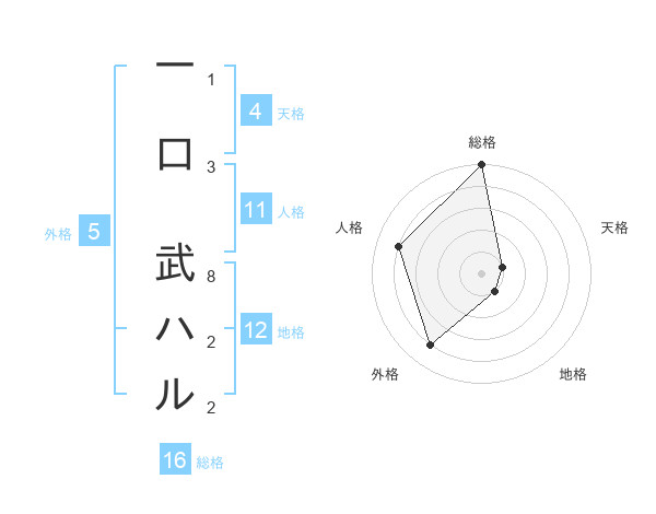 一口 武ハルさんの総格は16画の5点!