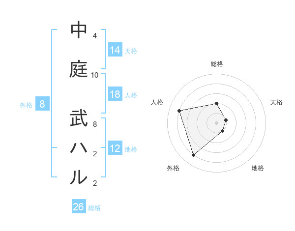 中庭 武ハルさんの外格は8画の4点!
