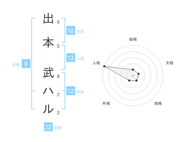 出本 武ハルさんを姓名の画数から五運を鑑定
