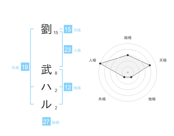 劉 武ハルさんの総格は27画の3点!