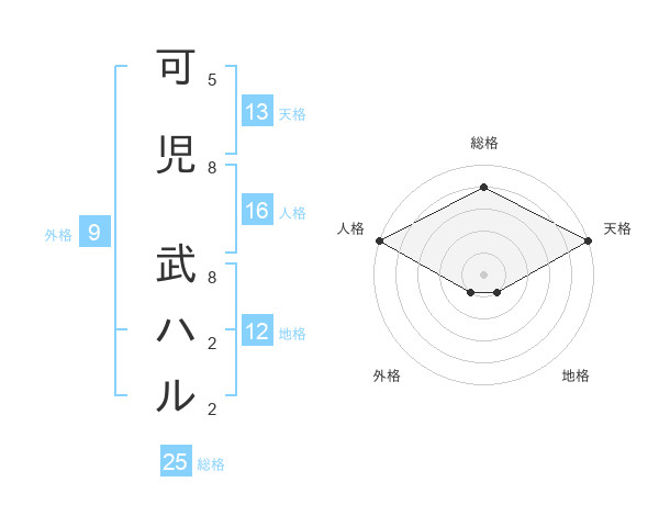 可児 武ハルさんの天格は13画の5点!