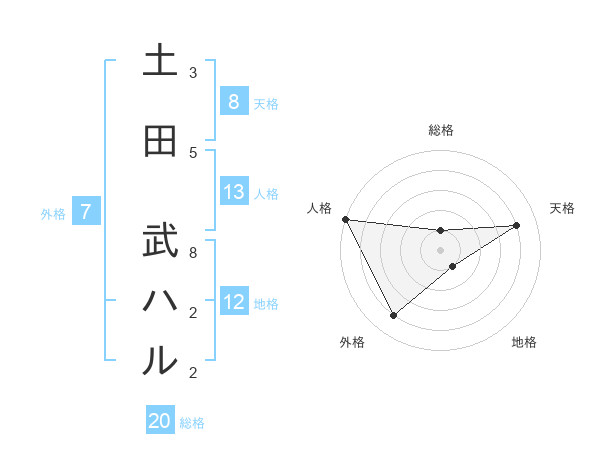 土田 武ハルさんを姓名の画数から五運を鑑定