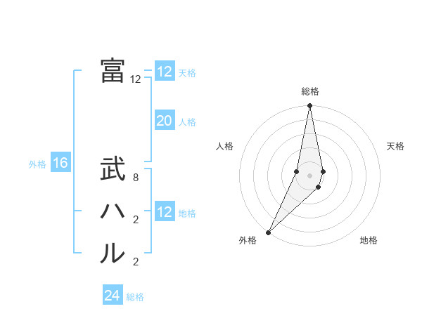 富 武ハルさんの天格は12画の1点!