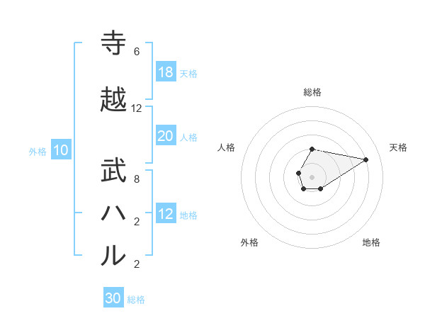 寺越 武ハルさんを姓名の画数から五運を鑑定