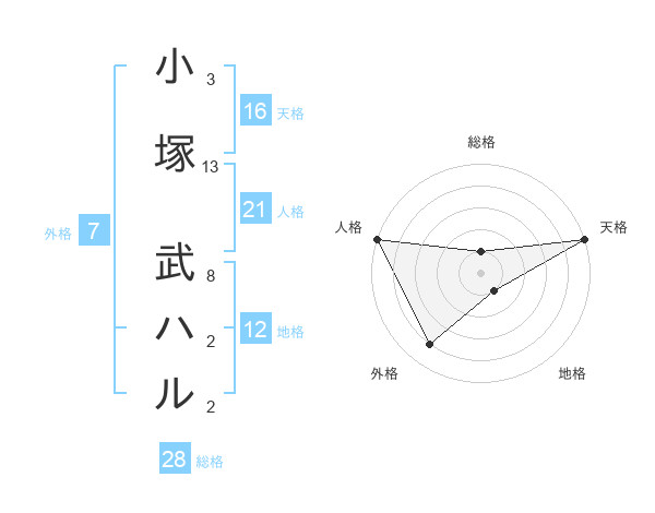 小塚 武ハルさんの総格は28画の1点!