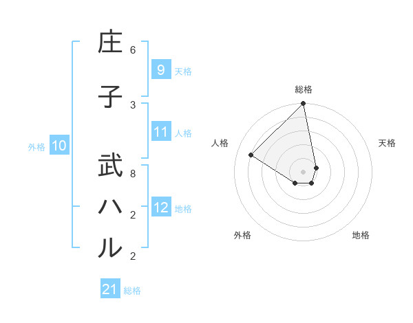 庄子 武ハルさんを姓名の画数から五運を鑑定
