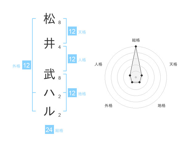 松井 武ハルさんを姓名の画数から五運を鑑定