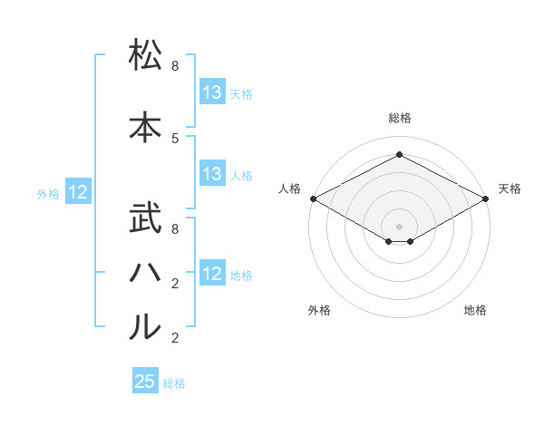 松本 武ハルさんを姓名の画数から五運を鑑定