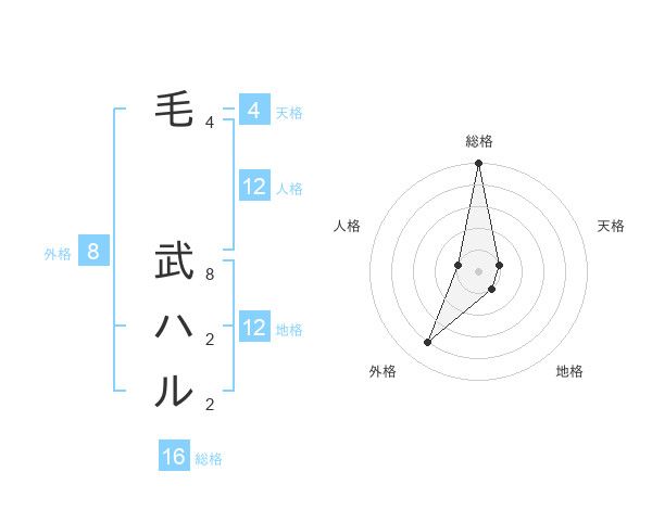 毛 武ハルさんの総格は16画の5点!