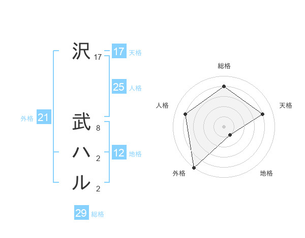 沢 武ハルさんを姓名の画数から五運を鑑定