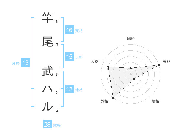 竿尾 武ハルさんの総格は28画の1点!