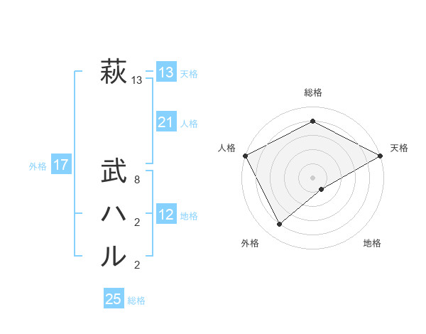 萩 武ハルさんの総格は25画の4点!