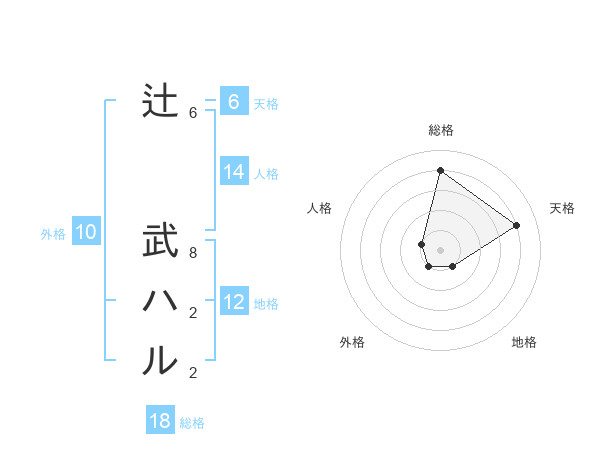 辻 武ハルさんの天格は6画の4点!