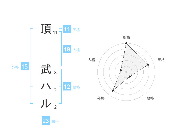 頂 武ハルさんの外格は15画の4点!