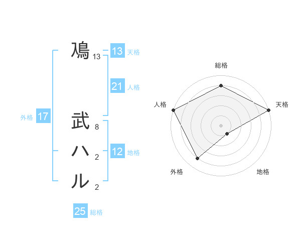 鳰 武ハルさんの天格は13画の5点!