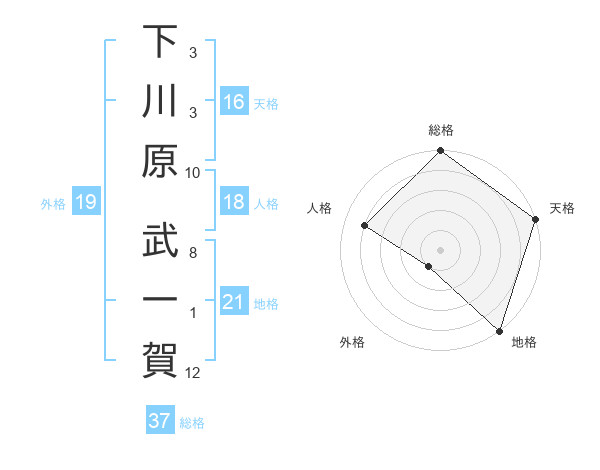 下川原 武一賀さんを姓名の画数から五運を鑑定