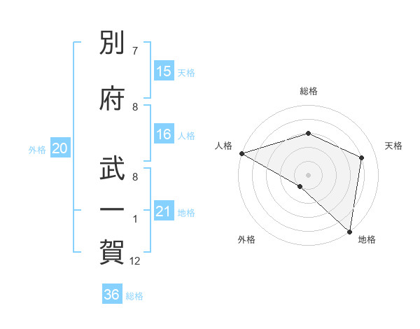 別府 武一賀さんを姓名の画数から五運を鑑定