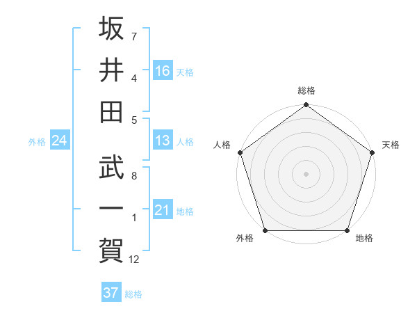坂井田 武一賀さんを姓名の画数から五運を鑑定