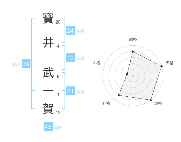 寶井 武一賀さんを姓名の画数から五運を鑑定