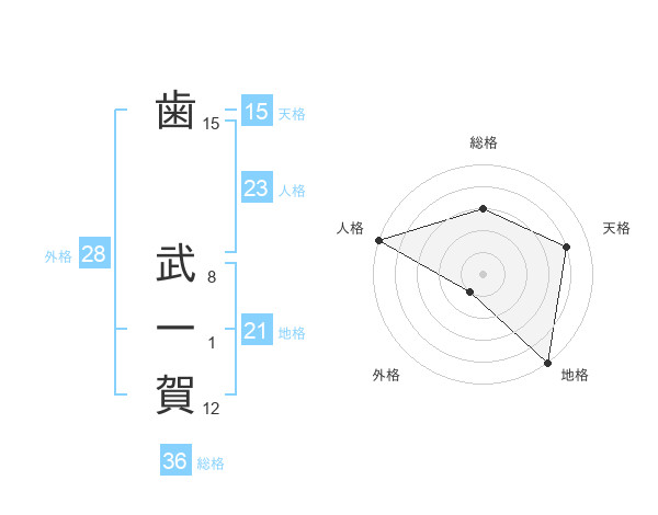 歯 武一賀さんを姓名の画数から五運を鑑定