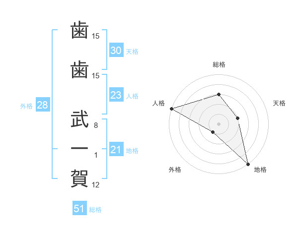 歯歯 武一賀さんを姓名の画数から五運を鑑定