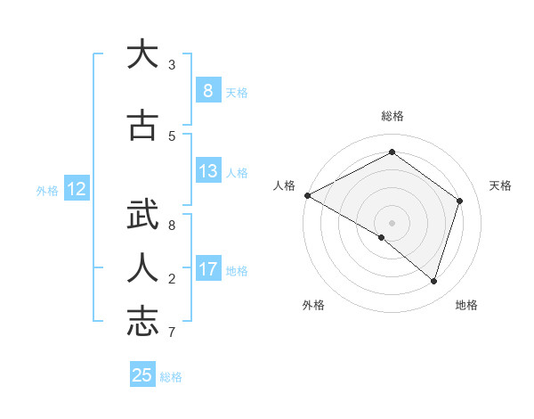 大古 武人志さんの天格は8画の4点!