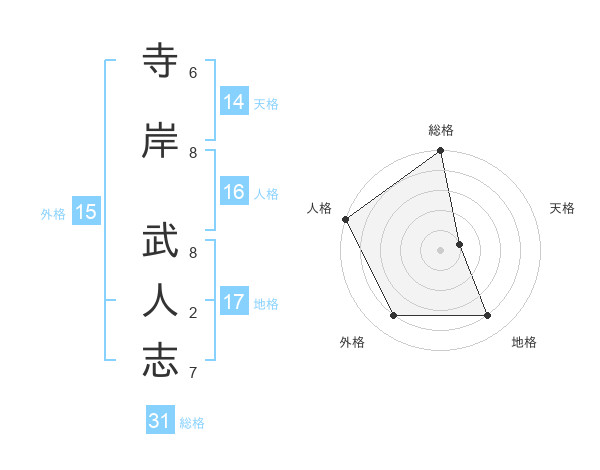 寺岸 武人志さんの総格は31画の5点!