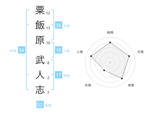 粟飯原 武人志さんを姓名の画数から五運を鑑定