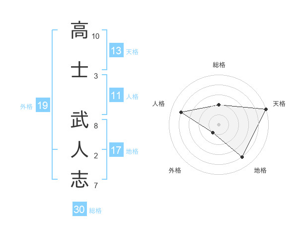 高士 武人志さんの天格は13画の5点!