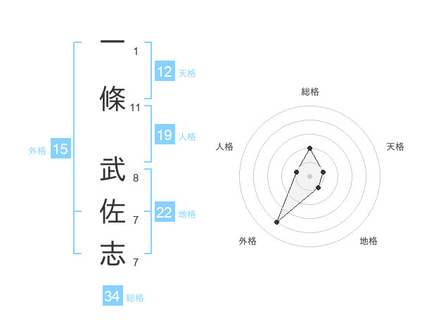 一條 武佐志さんを姓名の画数から五運を鑑定
