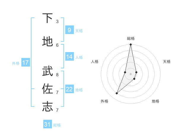 下地 武佐志さんを姓名の画数から五運を鑑定