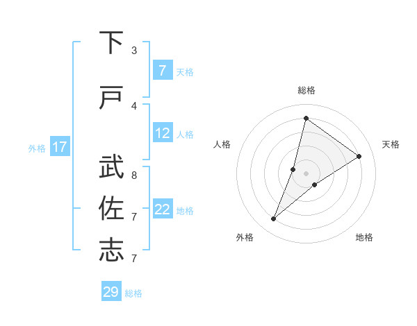 下戸 武佐志さんの総格は29画の4点
