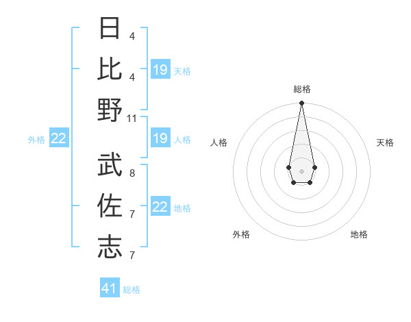 日比野 武佐志さんを姓名の画数から五運を鑑定