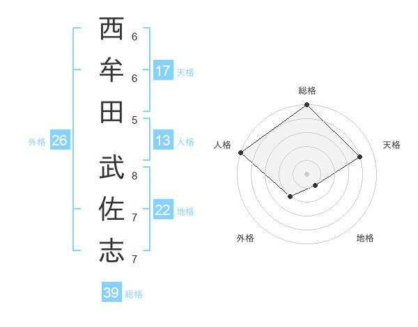 西牟田 武佐志さんを姓名の画数から五運を鑑定