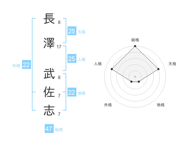長澤 武佐志さんを姓名の画数から五運を鑑定