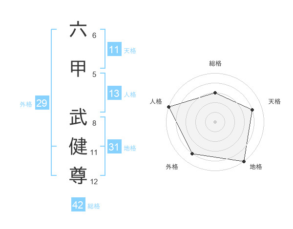 六甲 武健尊さんを姓名の画数から五運を鑑定