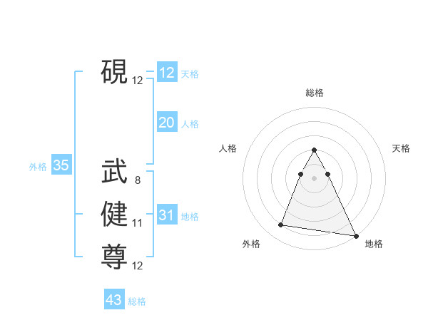 硯 武健尊さんの外格は35画の4点!